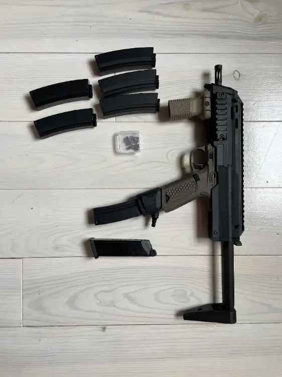je fournie également les pièces du deuxième chargeur, ainsi qu'un adapteur permettant de rajouter réducteur de son selon vos envies.