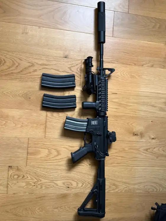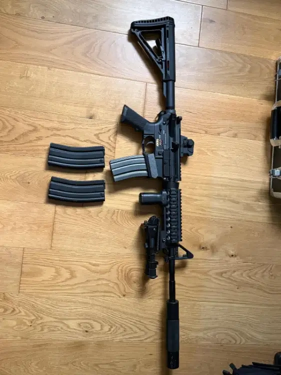 Vendue avec 3 chargeurs hi-cap, bipied, silencieux et un second ressort.. Batterie non fournie