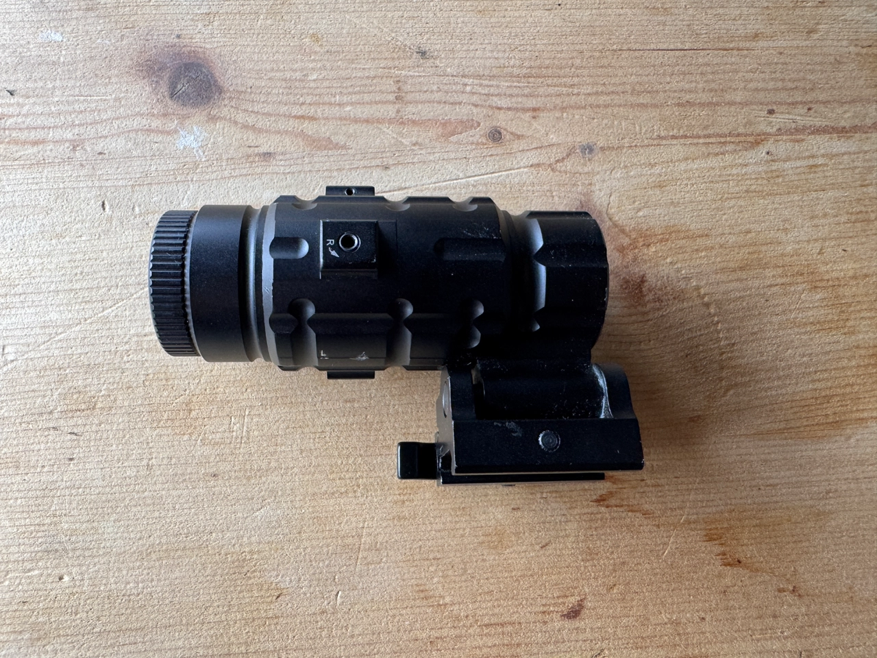 Je met en vente, magnifier UTG x3 flip to side comme neuf utilisé sur 2 parties, aucun éclat aucune fissure sur la lunette.