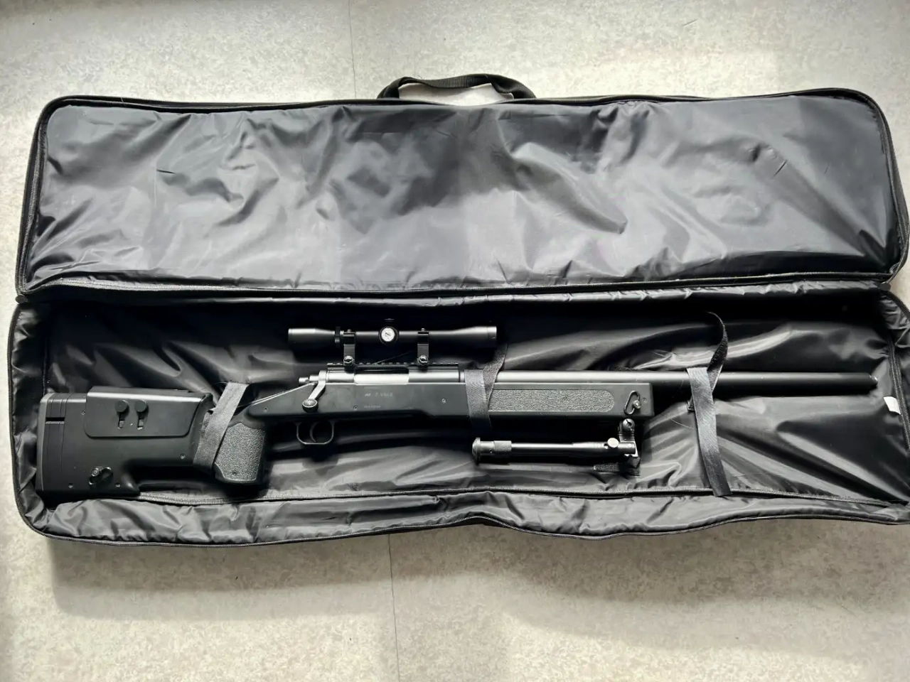 Je fourni la réplique tel que sur la photo avec lunette, bipied, la housse et sa boîte d’origine.