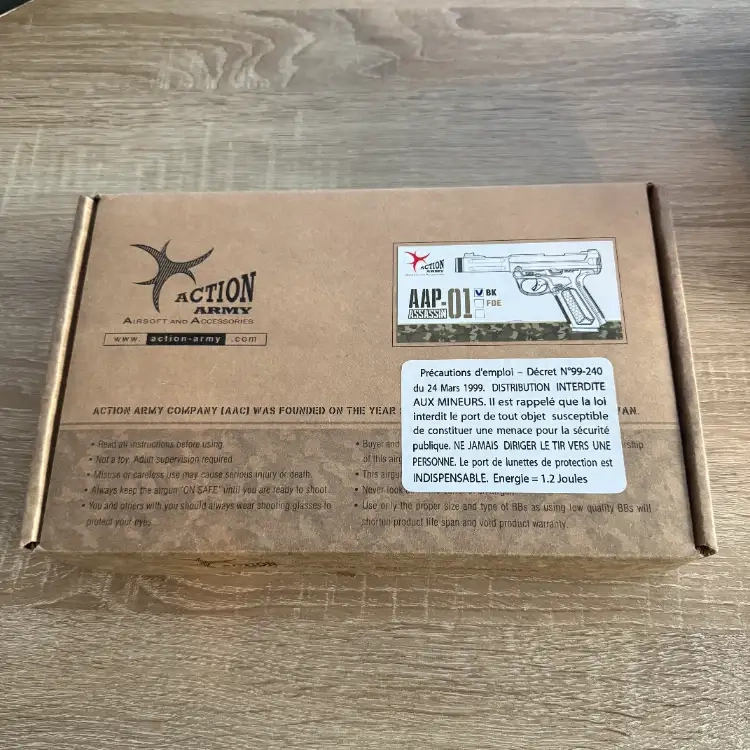 Je vends une réplique airsoft AAP-01 Assassin de chez Action Army, réputée pour sa fiabilité, sa précision et son excellent rapport qualité/prix. Modèle très apprécié aussi bien par les débutants que par les joueurs confirmés.