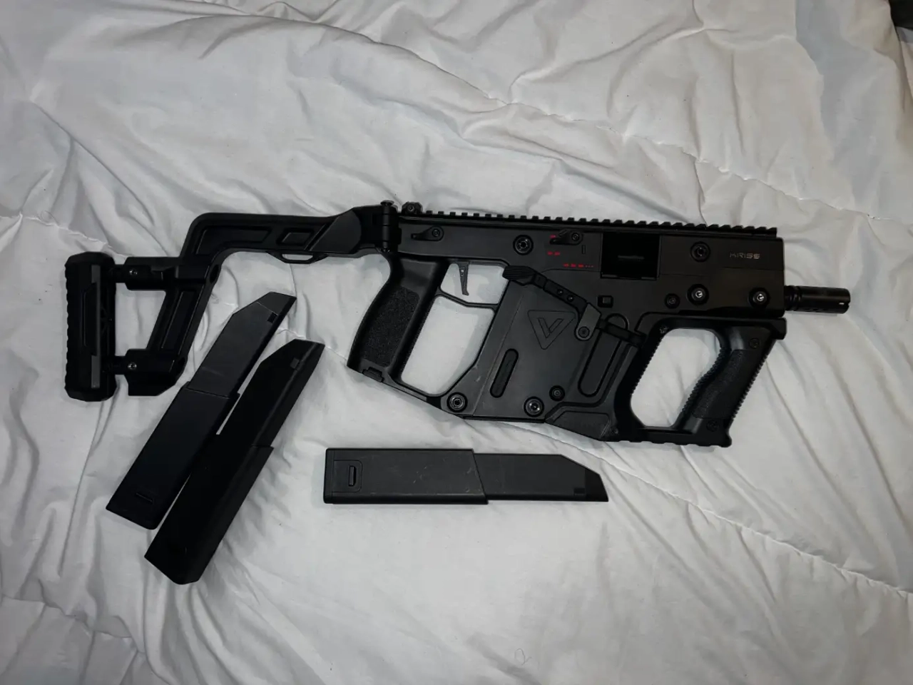 En vente, ce Kriss Vector de chez Krytac en très bon état, avec 4 chargeurs ( l'un n'est pas sur les photos mais bien présents et dans un état similaire ) et quelques modifs en externe, à savoir :