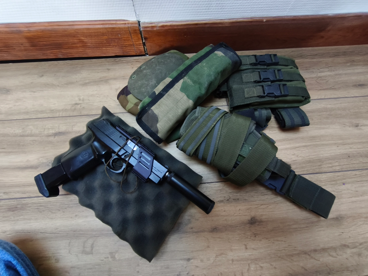 Je vends ma réplique de poing de type P226. C'est un modèle GBB très réaliste, idéal comme réplique secondaire ou pour le tir sur cible. Vendu avec l'équipement tactique essentiel.