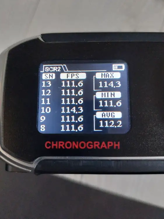 Test chrony à la 0,20 entre 111 et 114 FPS.