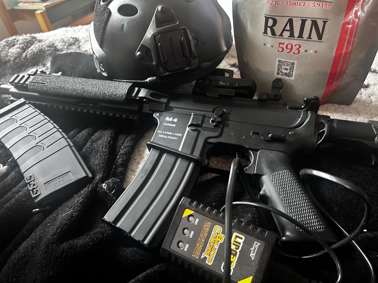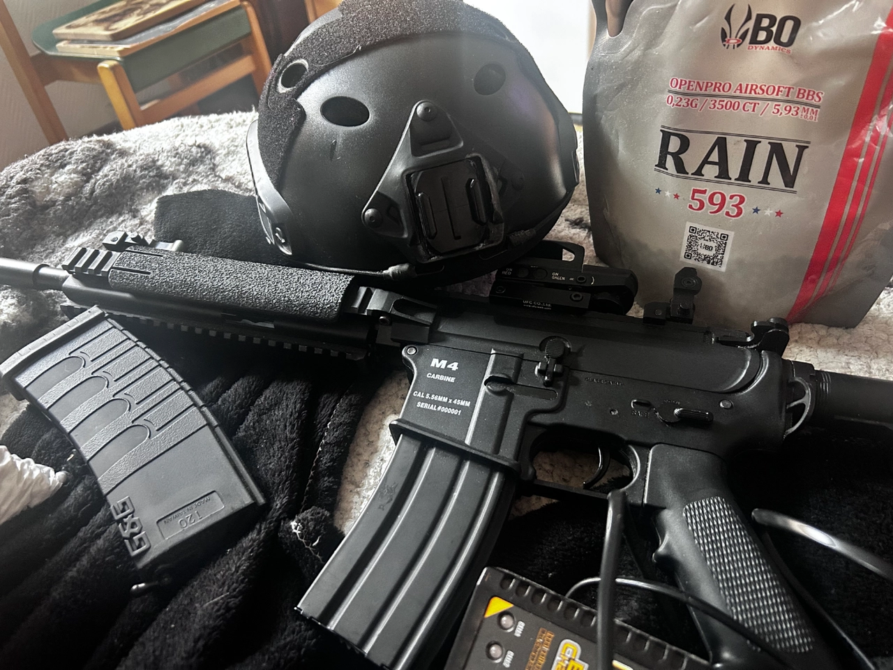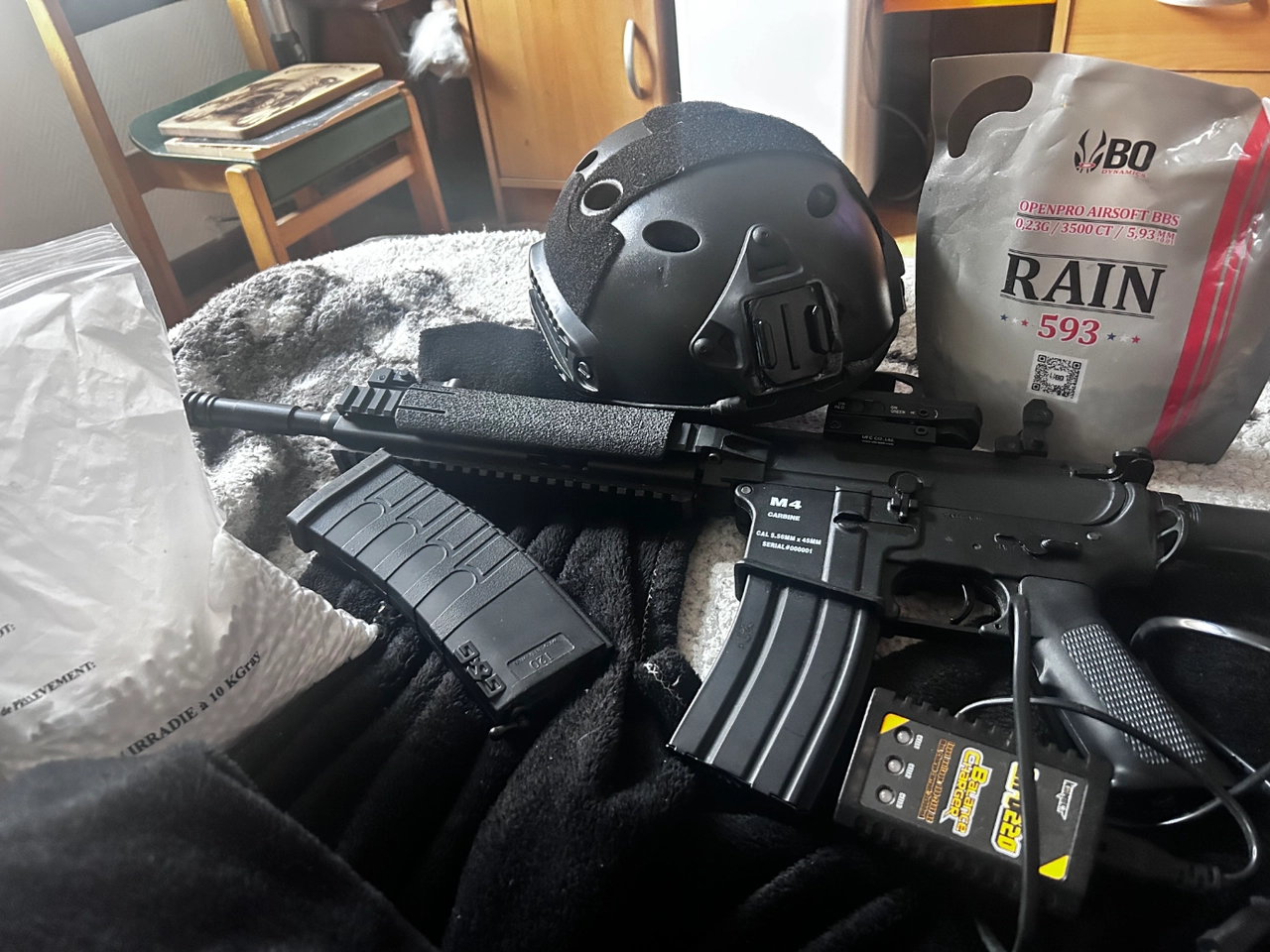 Je mets en vente une réplique **Airsoft M4 électrique (AEG)** en bon état, idéale pour débuter ou reprendre l’airsoft.