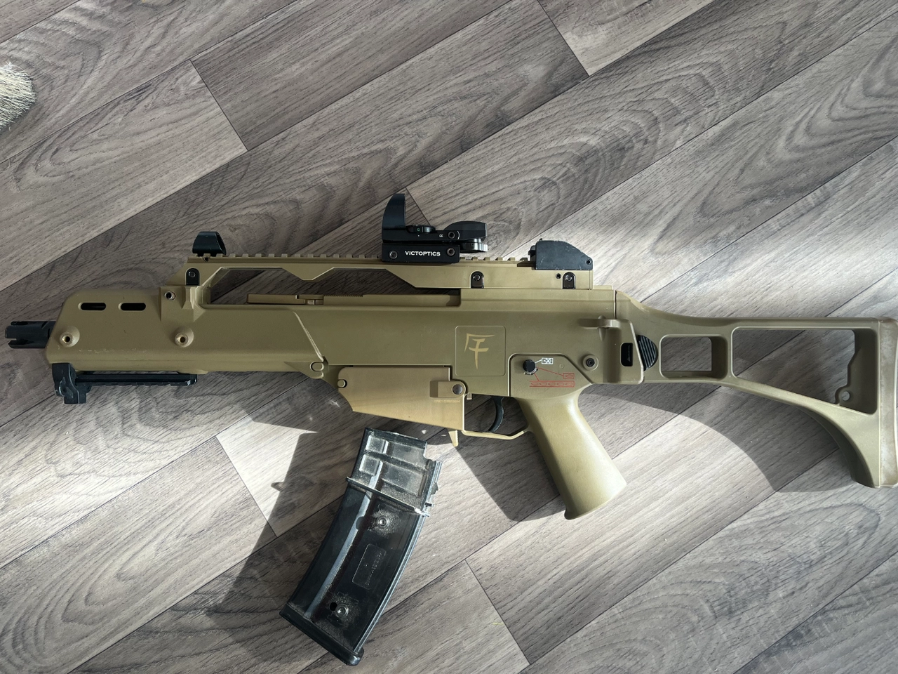 G36 en bonne état général acheté 180€ vendue avec un chargeur high cap , deux mid cap et avec un optique VICTOPTICS d’une valeur de 30€ . La réplique et vendue sans batterie et sans chargeur car perdue d’où le prix
