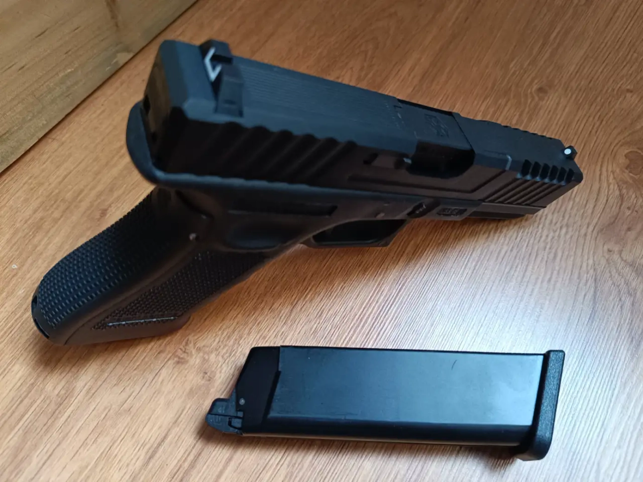 Vends G17 modifié avec une frame WE (marquages réalistes) La réplique est en parfait état ( voir photos) Aucune partie, seul quelques billes pour tester son bon fonctionnement. 120 euros frais de port compris.