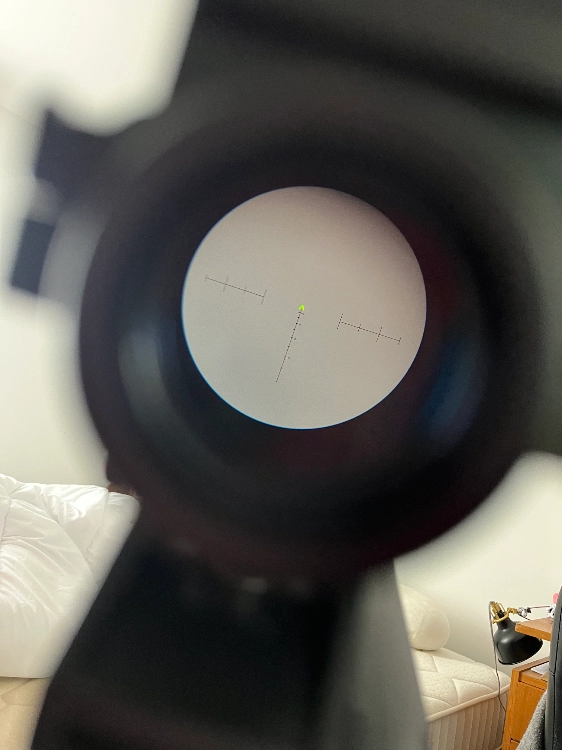 il a un zoom x4 et la croix s'illumine par fibre optique verte