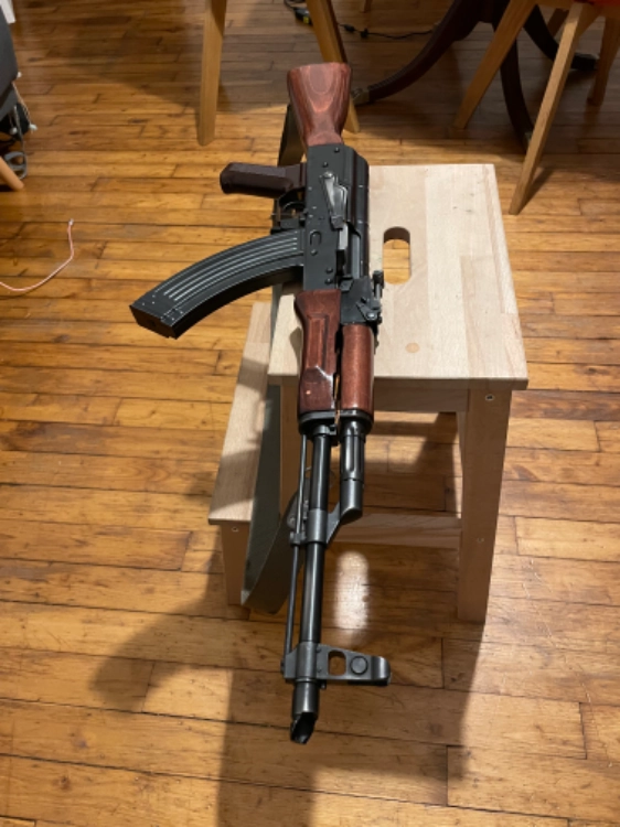 Fourni avec un chargeur E&L acier, sangle d’ak originale et j’ai retravaillé le bois pour avoir une couleur acajou, plus réaliste que la couleur d’origine.