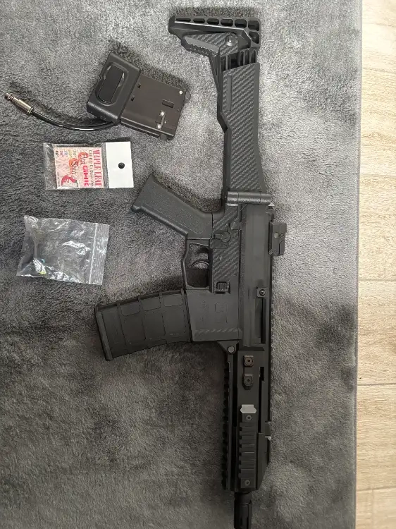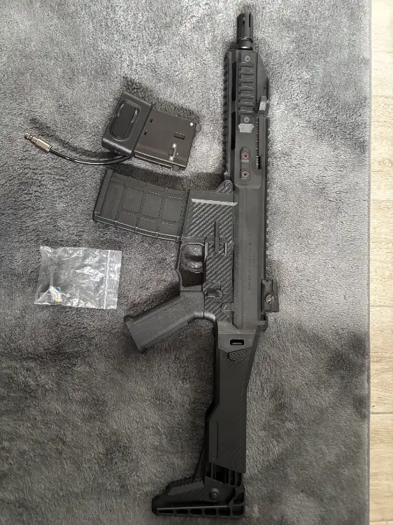 La réplique a un skin Carbon de chez AirsoftSkinZone, qui peut etre retirer facilement.