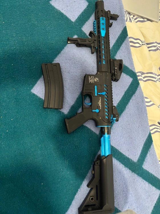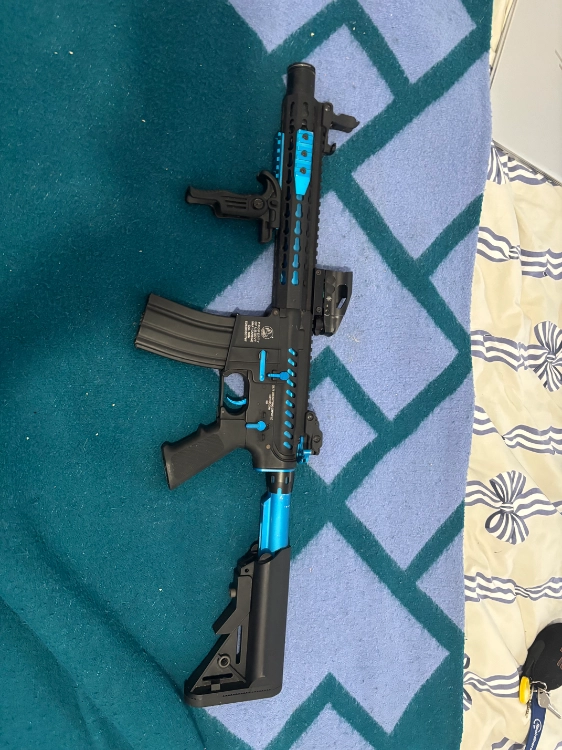Réplique M4 Blast Blue Fox COLT Keymod Full métal AEG #CYB-180771