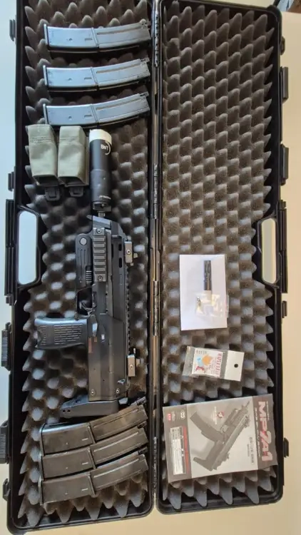 Vends MP7 Tokyo Marui GBB avec 6 chargeurs, traceur (sans les piles) et sa mallette de protection Strike Systems.