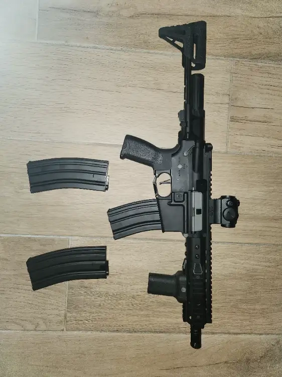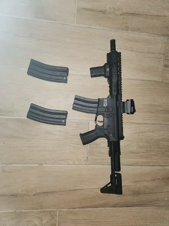 Bonjour, je vend ma M4 PDW de chez Ama Tsu Maru. Elle est vendue avec son viseur point rouge de la même marque, une poignée avant type magpul et 3 chargeurs 150 coups.
