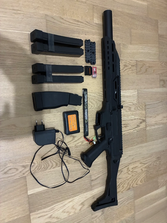 Bonjour, je vend cette scorpion evo 3 carbine très peu servi avec un chargeur grande capacité et 4 petit capacité. Vendu avec ça batterie neuve avec ça pochette et sont chargeur. Ça boîte est vendu avec j’ai encore la facture si besoin. Possibilité d’avoir plus de photos sur demande
