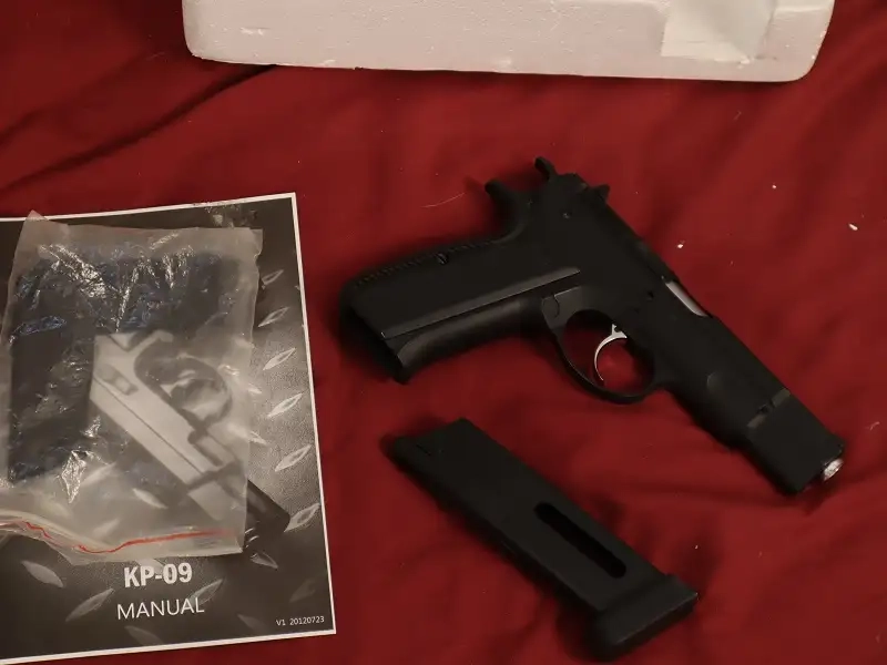 Fournit avec un chargeur C02 dont l'ergot qui tiens le talon a cassé, mais franchement le talon ne bouge pas du tout