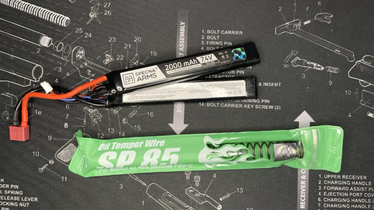 Fourni avec, une batterie LiPo 7.4V 2000mAh SPECNA ARMS ainsi qu’un ressort de rechange SP85 GUARDER.