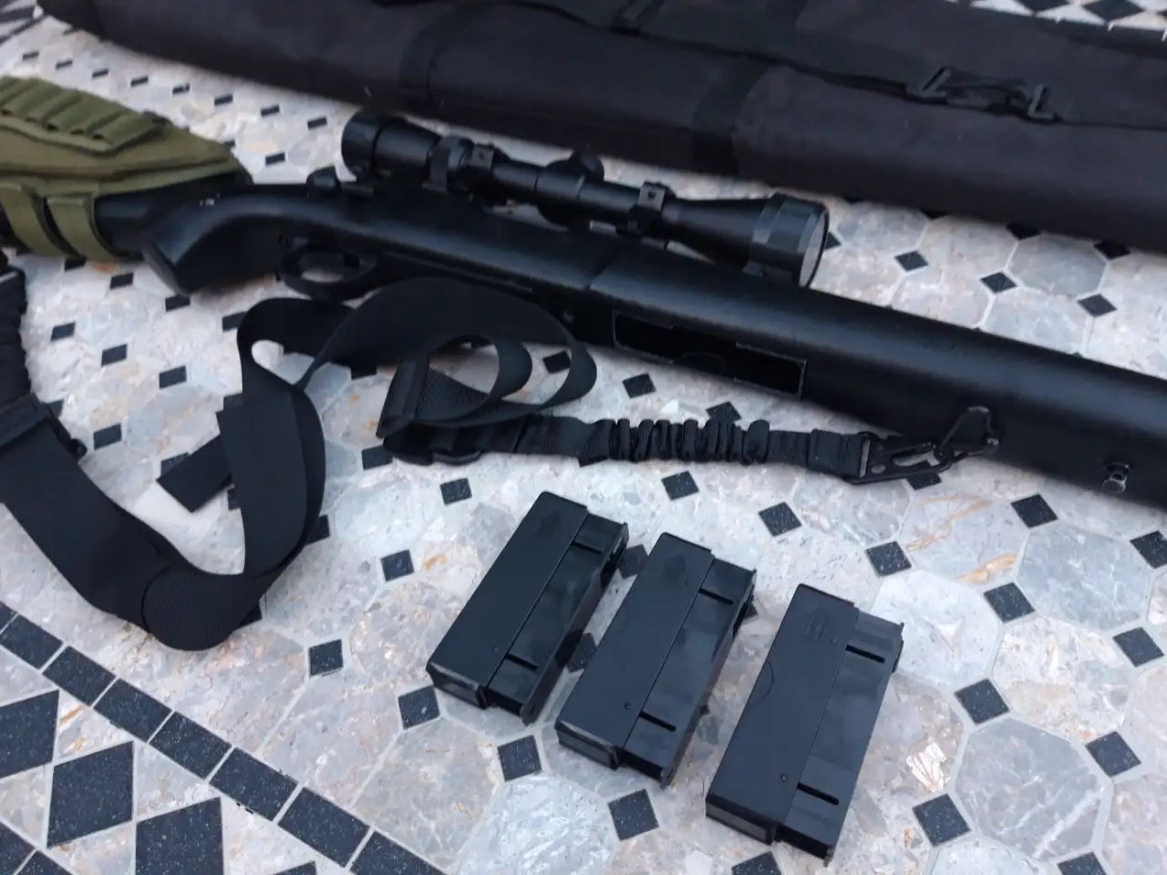 ○ Une modification à été effectuée, dans la réplique j'ai mis de la mousse dans la crosse ainsi que dans le canon afin de réduire les vibrations et le bruit lors du tir.