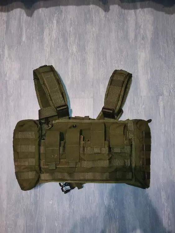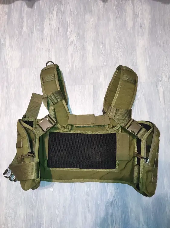 Je mets en vente ce chest rig de chez TT, modèle MK2 olive. Excellent état général, à l'exception d'un morceau de passant sur l'épaule droite que l'ancien utilisateur a découpé pour une raison qui m'échappe ??