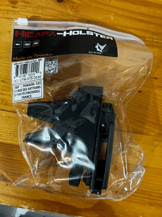 Holster rigide pour hi capa qui permet comme montré sur la photo de monter une réplique avec une lampe et un viseur mais aussi avec un traceur monté. Le modèle vendu est neuf jamais utilisé et encore dans l'emballage d'origine.