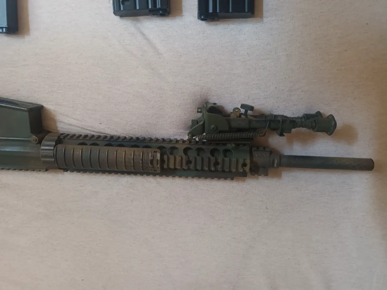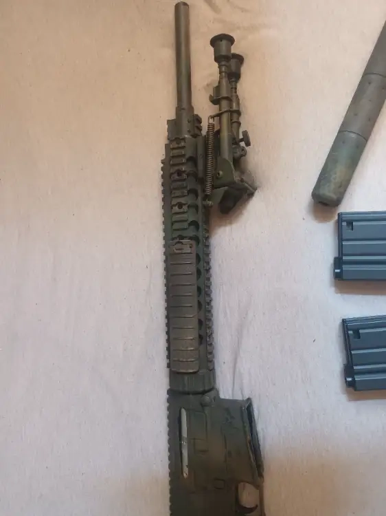 Fourni avec les pièces d'origine et sa boîte ,4 chargeur dont 2 propriétaire G&G 50 coup et 2 Cyma modifié pour être compatible avec la réplique 4 Magpul 7.62 et le bipied novritsch