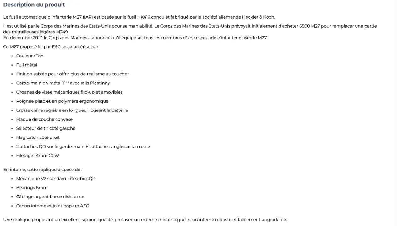 Bonjour, aujourd’hui je vous propose une magnifique réplique de M27 IAR dérivé du HK416