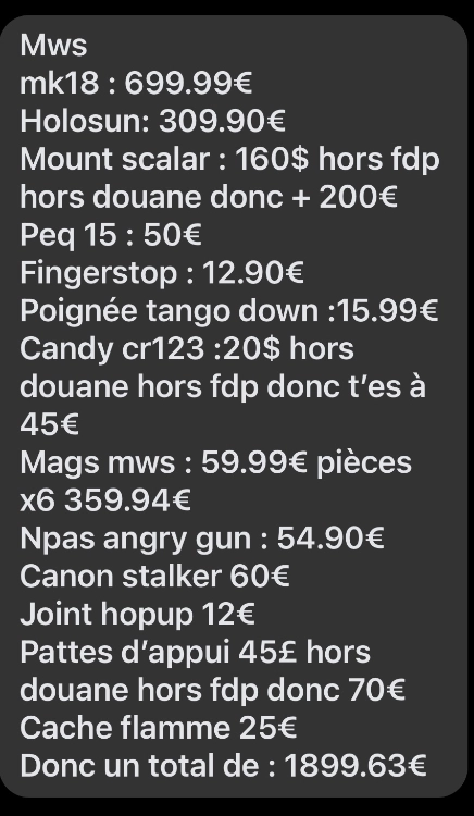 Je vends mon mk18 mws marui upgrade (voir photos pour l'upgrade)
