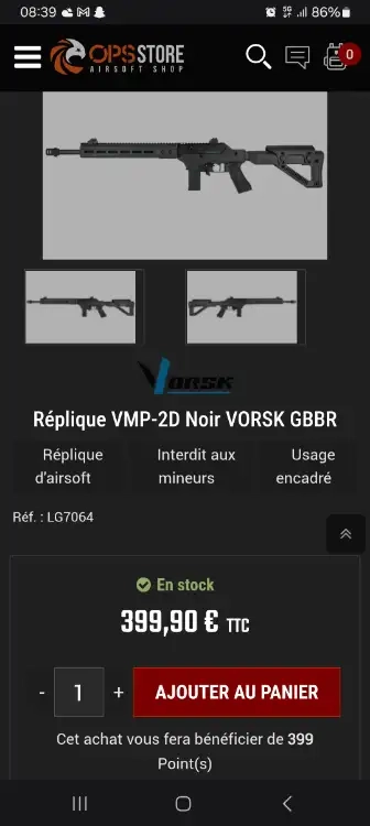 Bonjour, je vend un vmp2d totalement neuf encore dans la boîte pas tirer une bille même pas déballer du colis.
