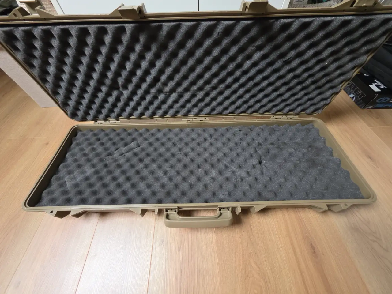 Malette rigide 1mètre tan avec mousse, 1 fermoire cassé qui se ferme et s'ouvre tout de même.