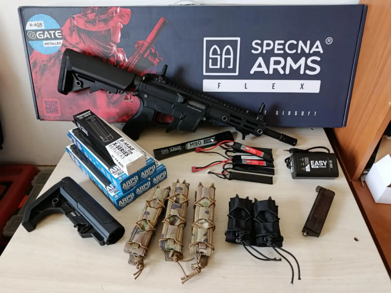 remplacement de la crosse d'origine par une crosse crane specna arms, pour y loger plus facilement la batterie