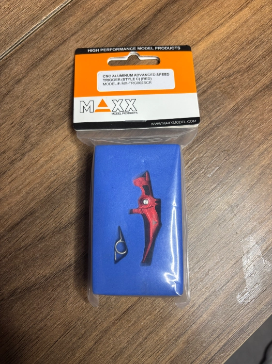 Je vends une gâchette (trigger) en métal aluminium rouge pour réplique airsoft.