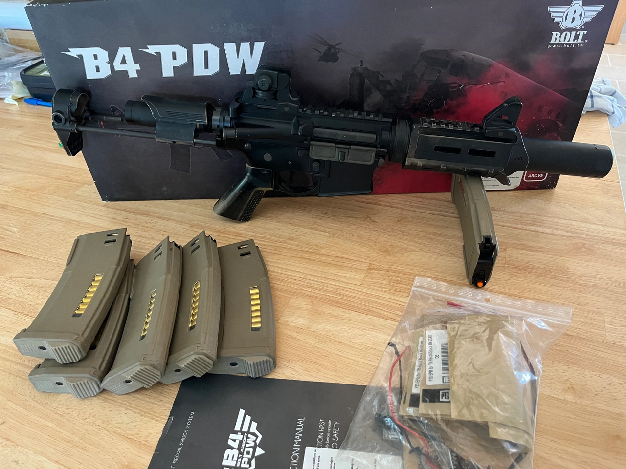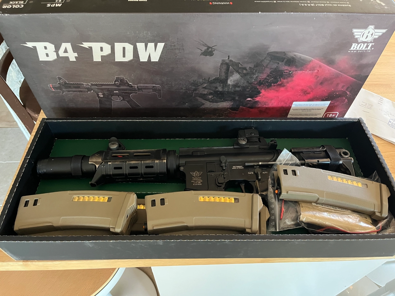 Le BOLT PDW M4 est une réplique compacte full métal électrique qui propose le système BRSS offrant un réalisme lors du tir avec un effet de recul, La batterie se stocke à l'avant dans le gardemain.