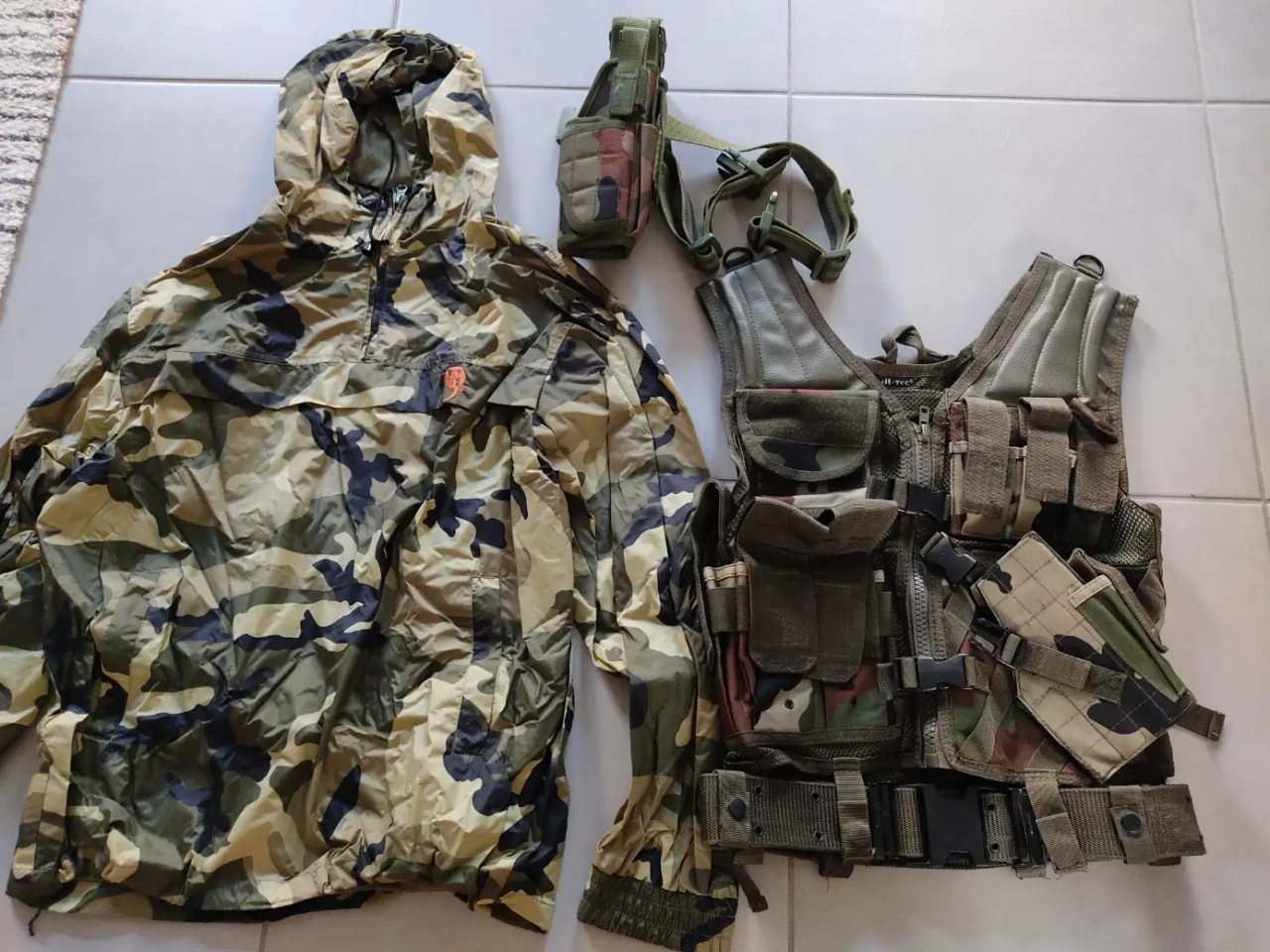 Vends gilet tactique, holster, lunette de protection et k-way militaire
