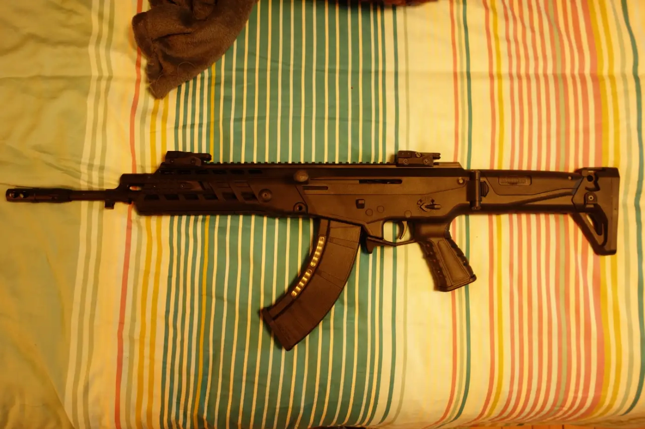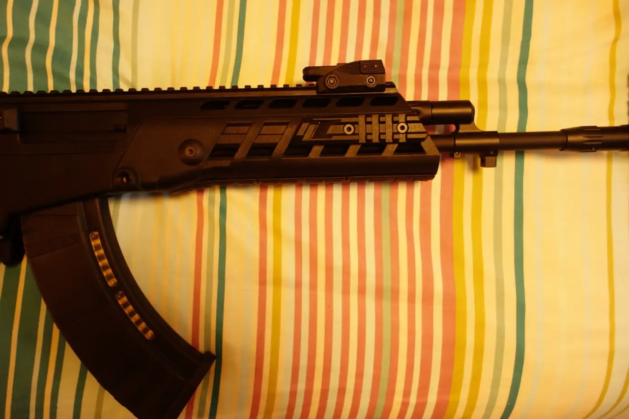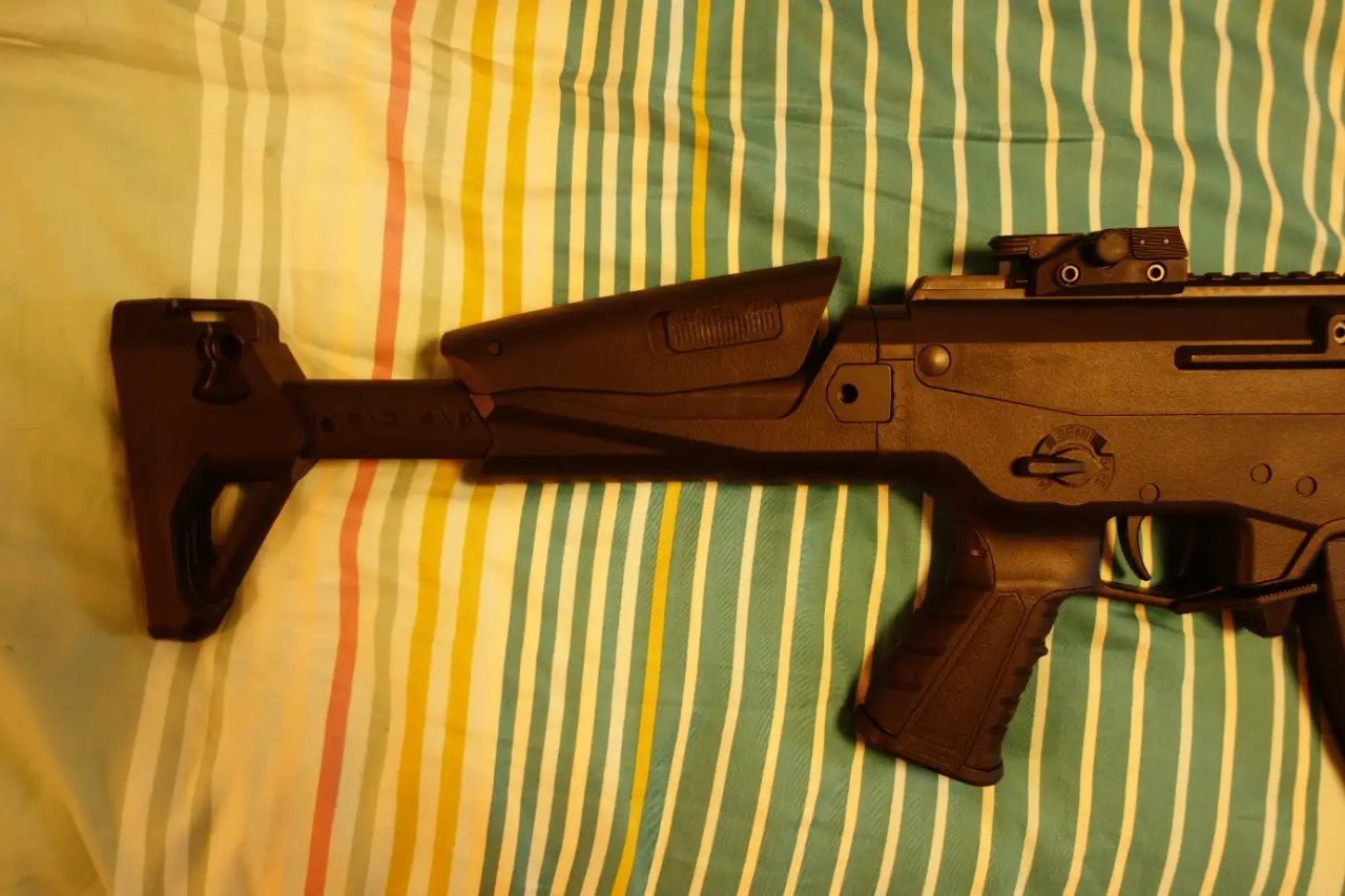 Corps, organe de visée, chargeur en plastique, elle est légère. Il manque la goupille qui verrouille le garde main (ce n'est pas gênant)