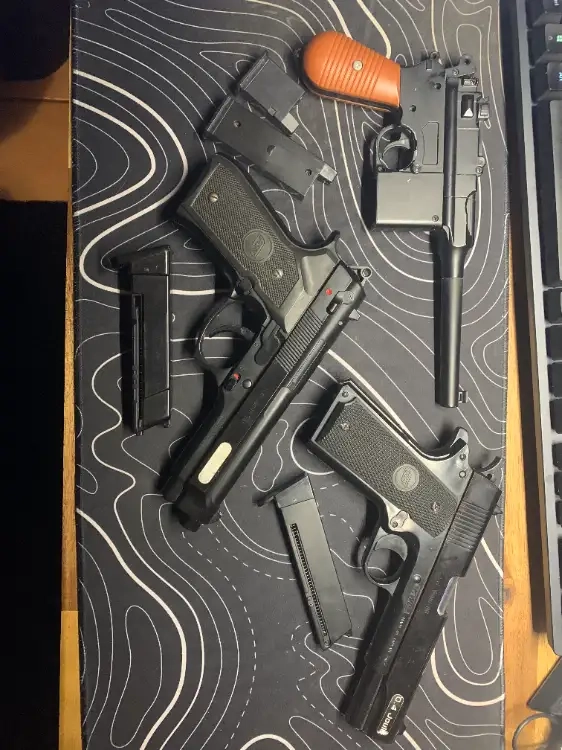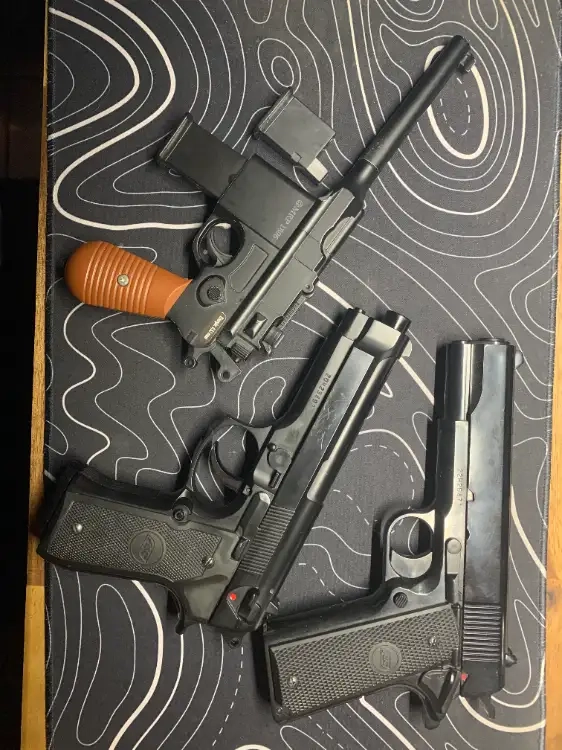 Le M712 est vendu avec deux chargeurs et est vraiment nul il tire vraiment mal et le bout du canon part il faut le recoller.