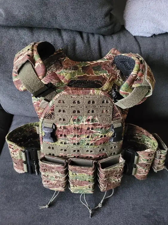 bonjour vend gilet tactique de chez Novritsh avec 4 porte chargeurs M4 et une poche arrière pour une bouteille hpa merci