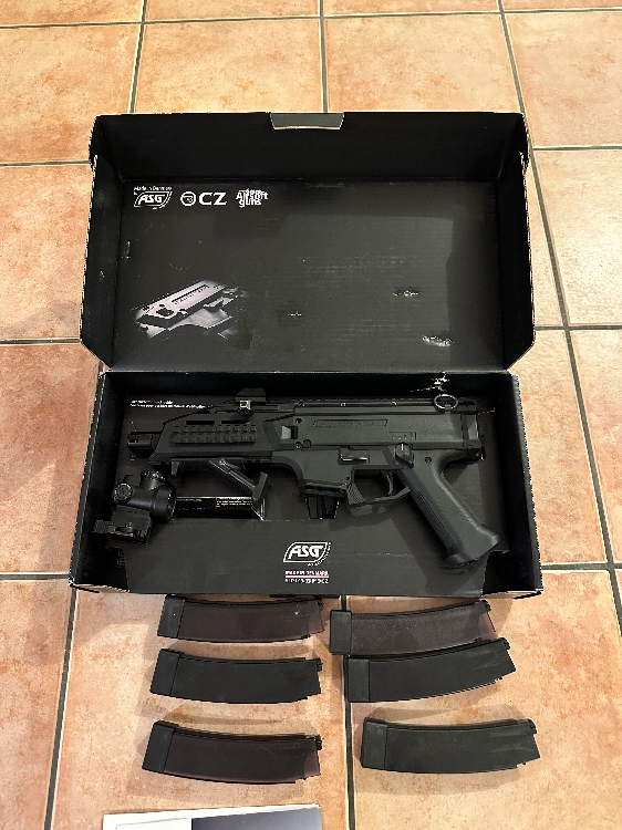 Vend Scorbion EVO 3A1 d’origine, il a quelques partie à son actif avec 6 chargeurs + 1 optique + une poignée.
