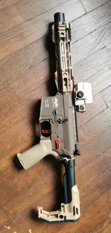 Vendue sans le red dot (possibilité de le négocier avec la réplique). Je laisse avec 2 chargeurs high cap G&g métal aux dimensions RS.