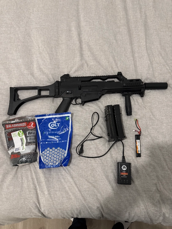 Bonjour , je vend ma réplique g36c qui n’a jamais servis car pas le temps d’en faire , je donne avec deux sachets de bille ainsi que un double chargeur , un silencieux et une poignée avant. Il y as bien sûr la batterie ainsi que son chargeur.