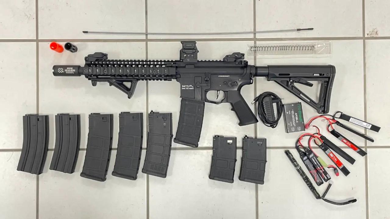 - Lot de chargeurs mid-cap : 2x Origine, 2x 20/70 coups D-Day, 4x type P-Mag environ 120 coups.