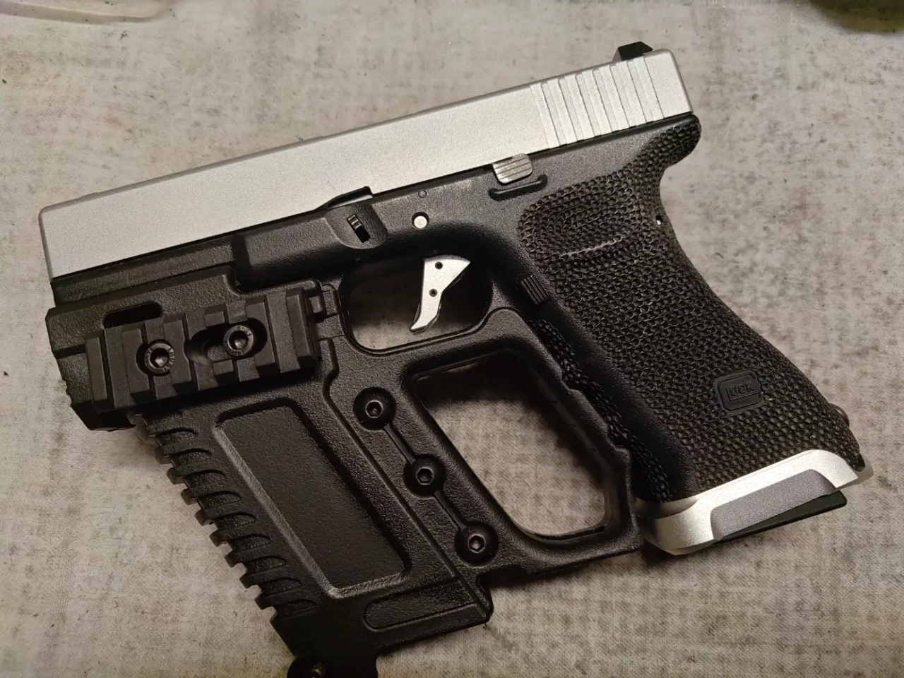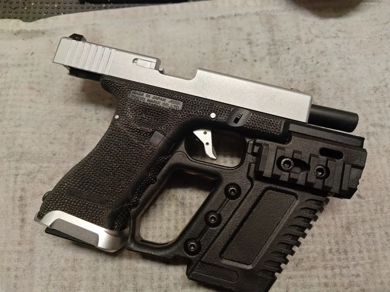 Bonjour je vend cette réplique totalement fonctionnelle avec un kit Slong , une trigger et un magwell Cowcow silver pour matcher avec la culasse