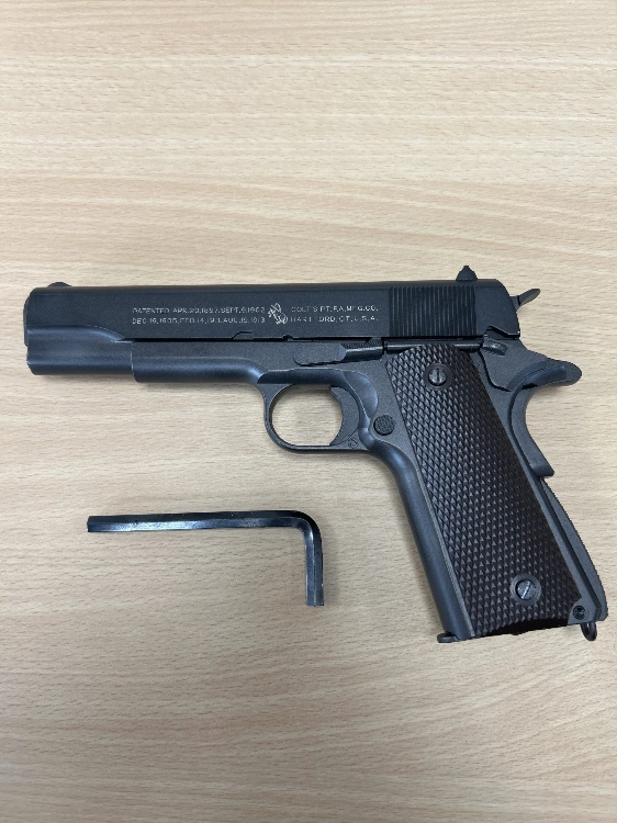 Réplique de poing airsoft CO2 COLT M1911 A1 100th Anniversary Blowback fabriquée par KWC sous licence officielle COLT.