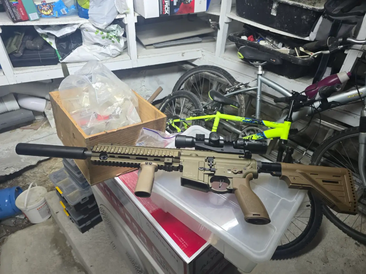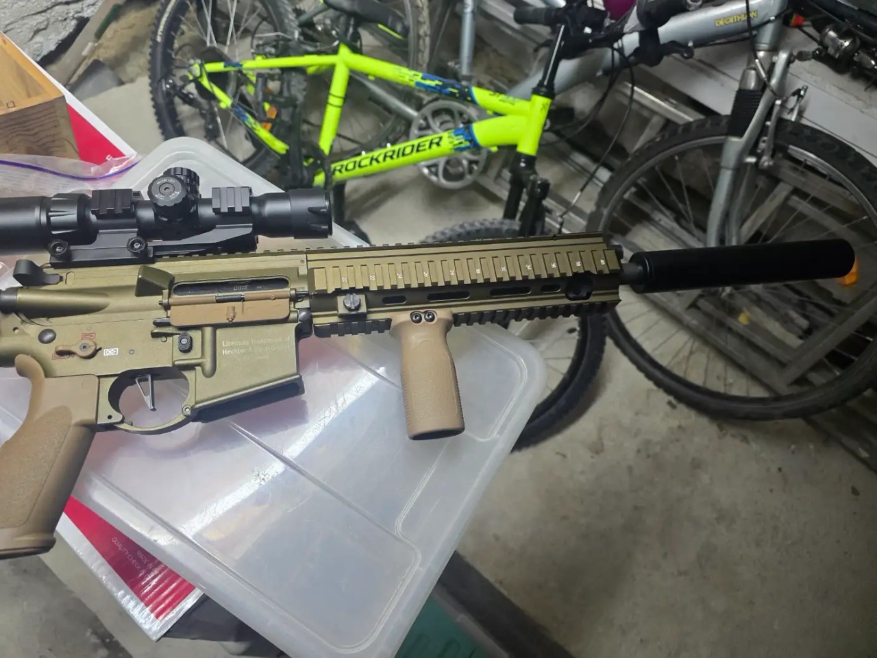 Bonjour je met en vente mon hk416 vfc ral8000 quasi neuve avec wolverine inferno gen2 Bloc max canon pdi wild bore 6.10 joint quantum et version premium