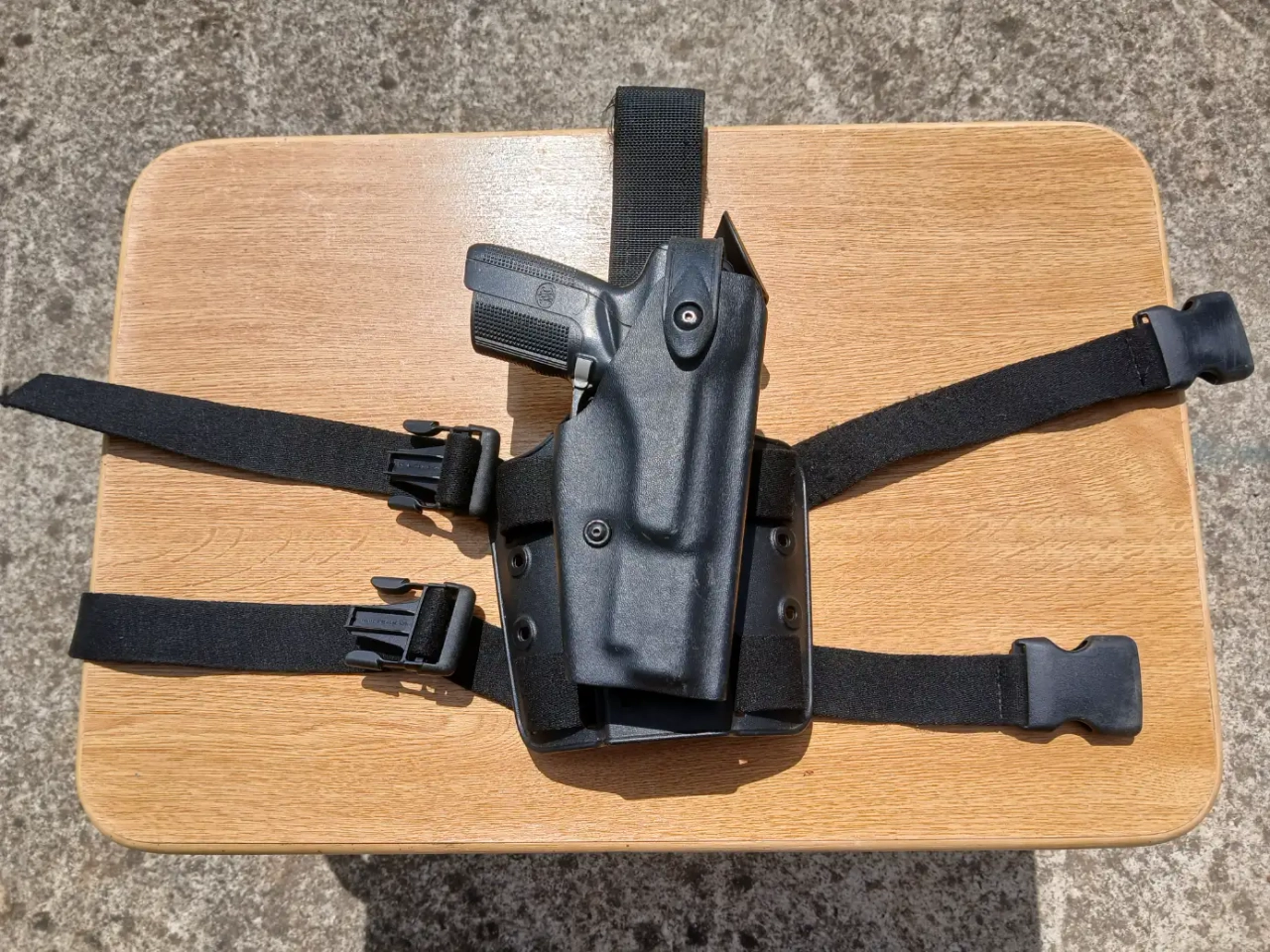 Accompagné d'un holster de cuisse pour le 5-7 de la marque Safariland.