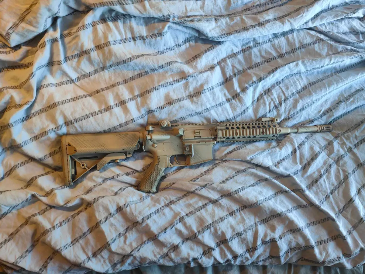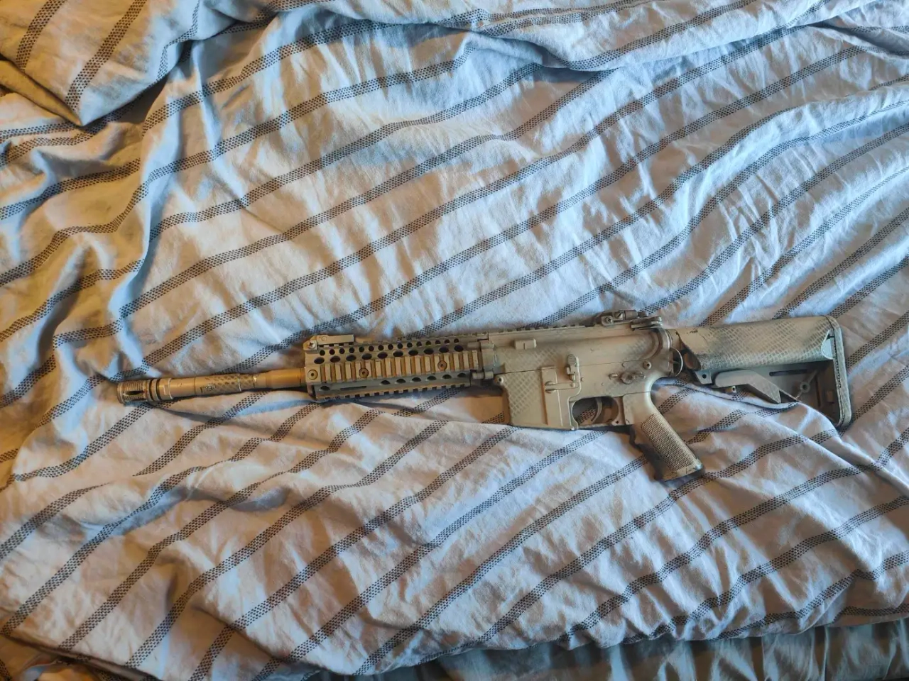 M4 de marque E&C il a fait deux parties mais est globalement en très bon état interne, n'arrivant pas à trouver quoi en faire j'ai testé pas mal de paint jobs dessus mais il tourne très bien bon choix pour une première réplique à petit budget, remise en main propre possible sur paris ou envoie par mondial relay, payement par paypal uniquement ou liquide si remise en main propre
