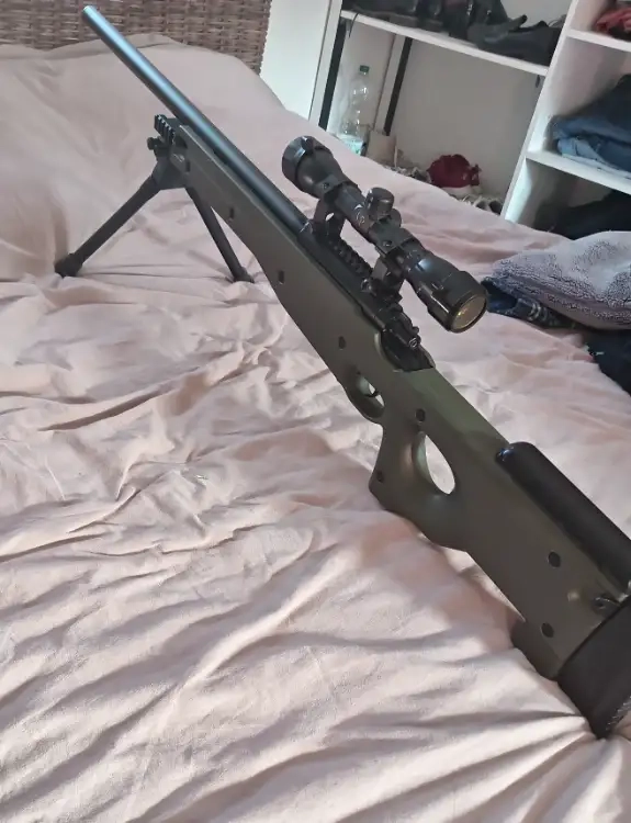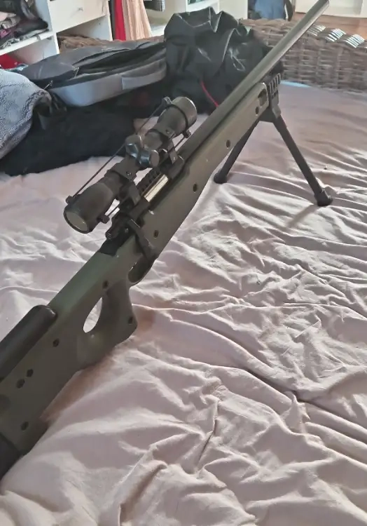 Je vends mon L96 en parfait état de marche avec une lunette 4*32 et un trépied que j'ai adapté. 3 chargeurs sont fournis avec.