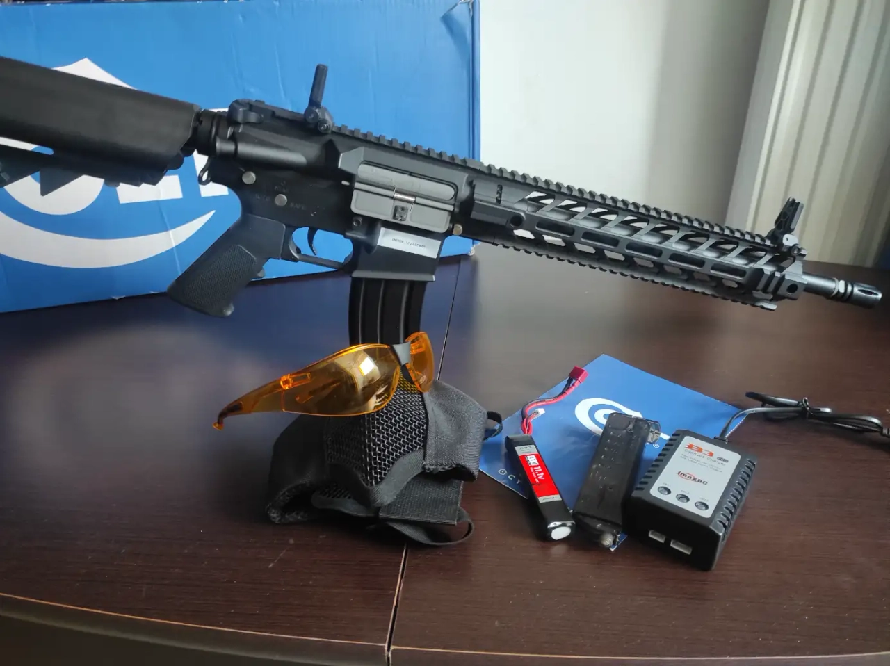 Sera livré avec chargeur billes métal, boîte d'origine, lunettes, masque de protection,
