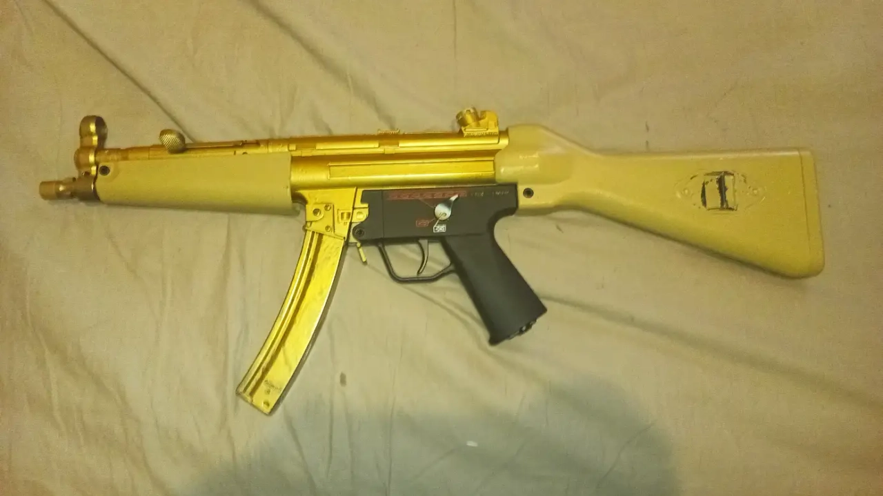 Réplique AEG style mp5 de chez G&G, rien de cassé ni d'upgrade et entretenu, je n'ai malheureusement plus la boîte et celui qui l'a repeint a fait un peu du bof, mais très Belle réplique achetée 240€ qui tire loin et droit, le prix est négociable MAIS JE NE PEUX PAS LIVRER, DONC SUR PLACE UNIQUEMENT!!! Donc si vous habitez dans Paris désolé. N'hésitez pas à me contacter sur