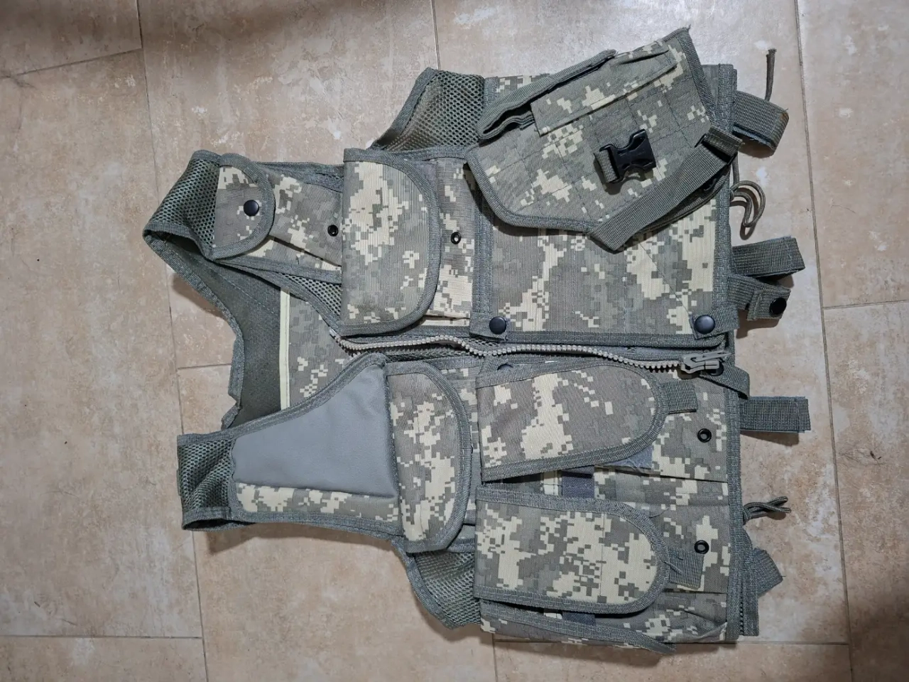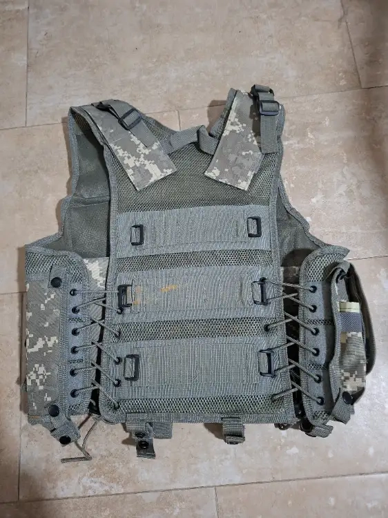 Gilet Tactique camo digital avec holster, très peu porté, il y a juste une tache dans le dos.