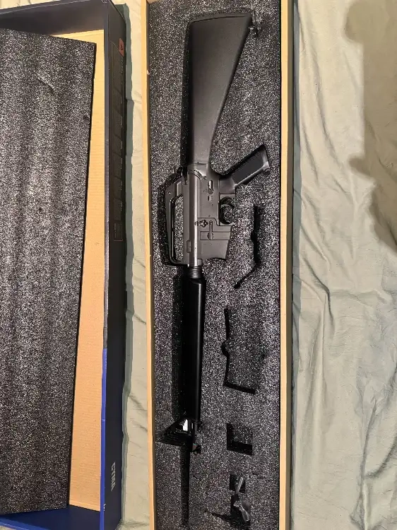 VEND M16 CYMA a que quelque partie a son actif bonne porte un peu de distance d engagement vendu avec un chargeur mid cap je les achete 200 je la vend 170 negociable