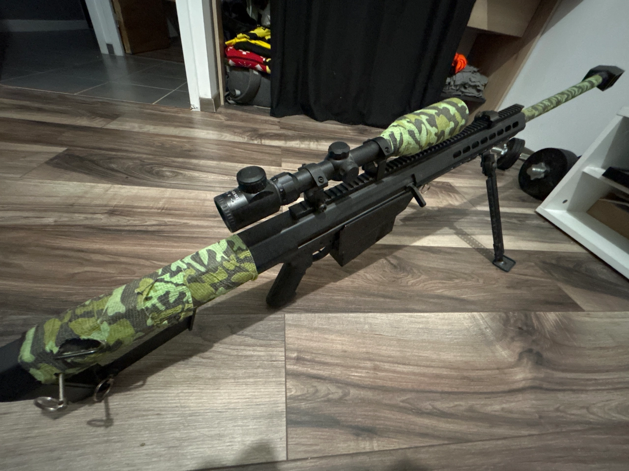 Bonjour vends ou échange Sniper Barrett M82A1 Snow wolf AEG full metal jamais vue le terrain service pour du tir de loisir hésite pas à me contacter par sms